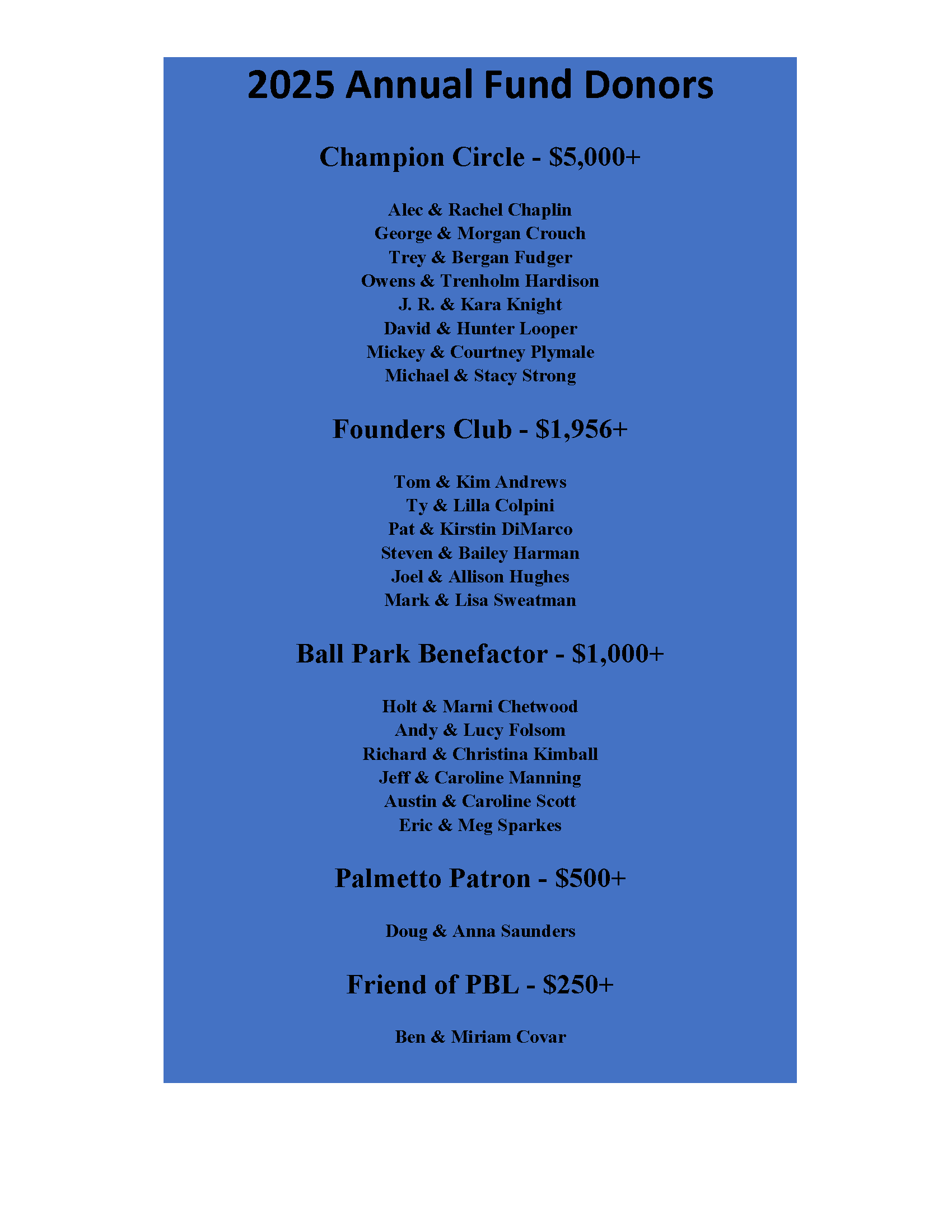 PBL is honored to be partnered with many incredible supporters. One way to support PBL is to sponsor one of many teams for the Spring Season throughout our four divisions for $1,200. If you or your company seeks to be a Team Sponsor for the Spring Season, please contact PBL and we would be more than happy to assist you with the process.